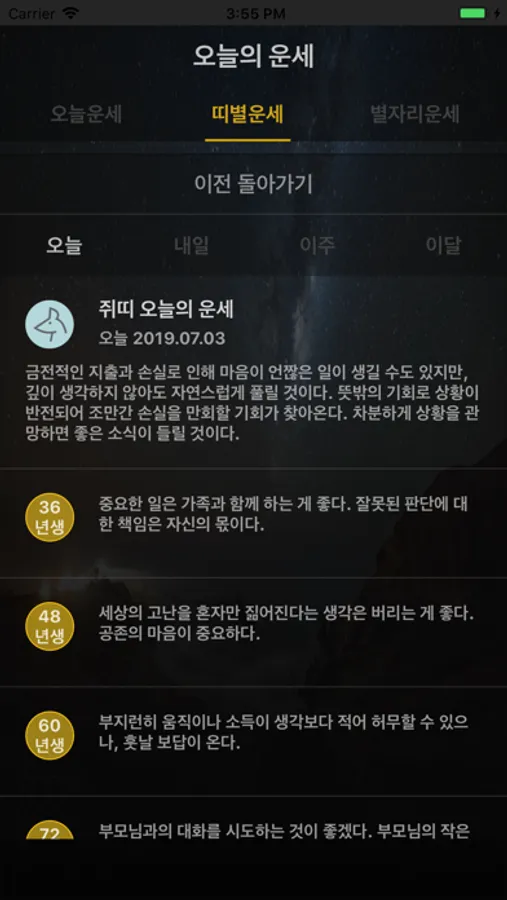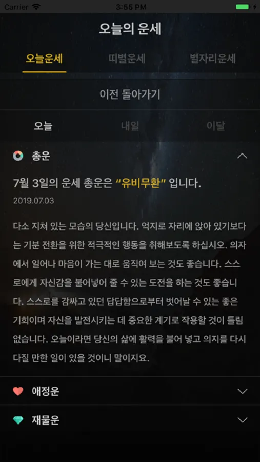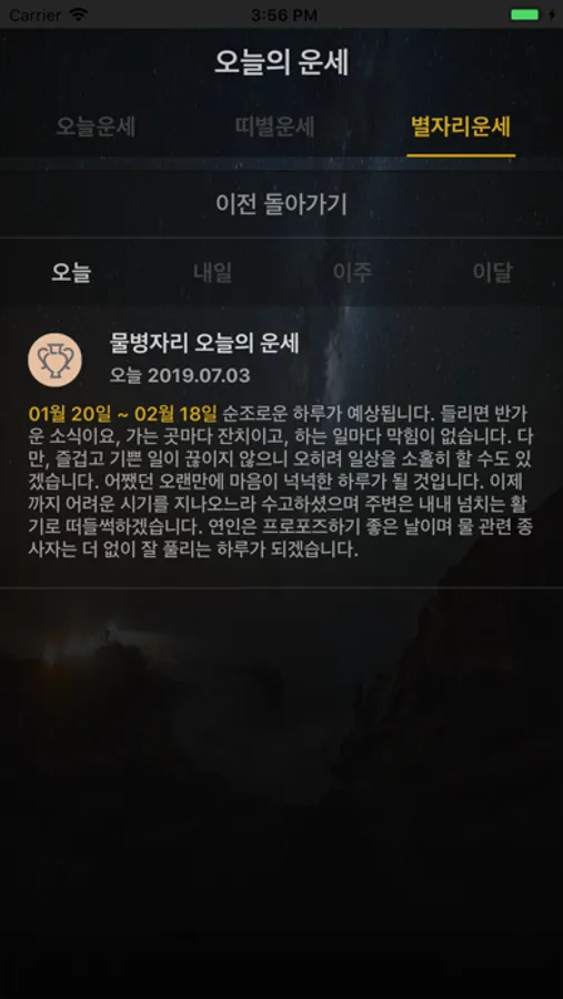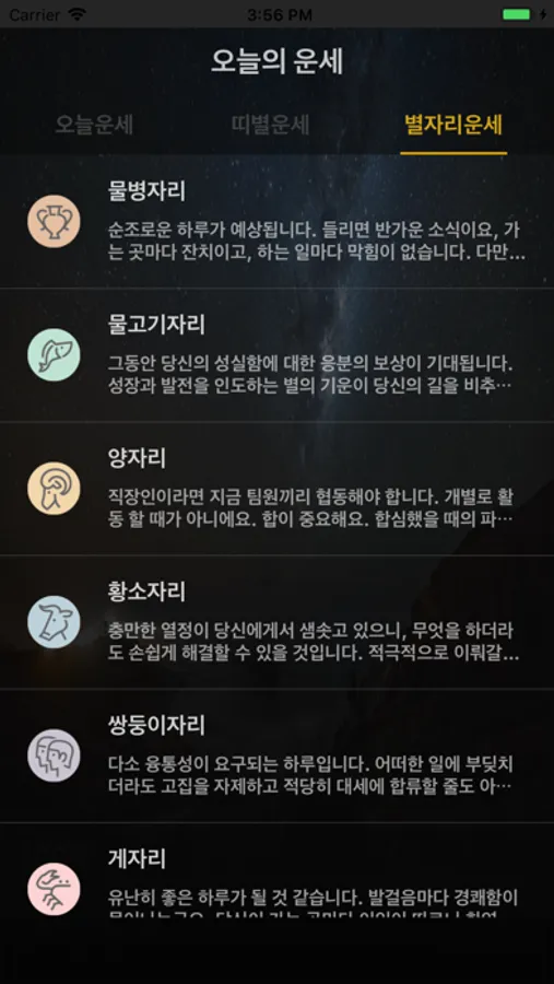 3. 오늘의 별자리 운세 : 우리에게 익숙한 별자리 별 하루의 운을 확인하실 수 있습니다.