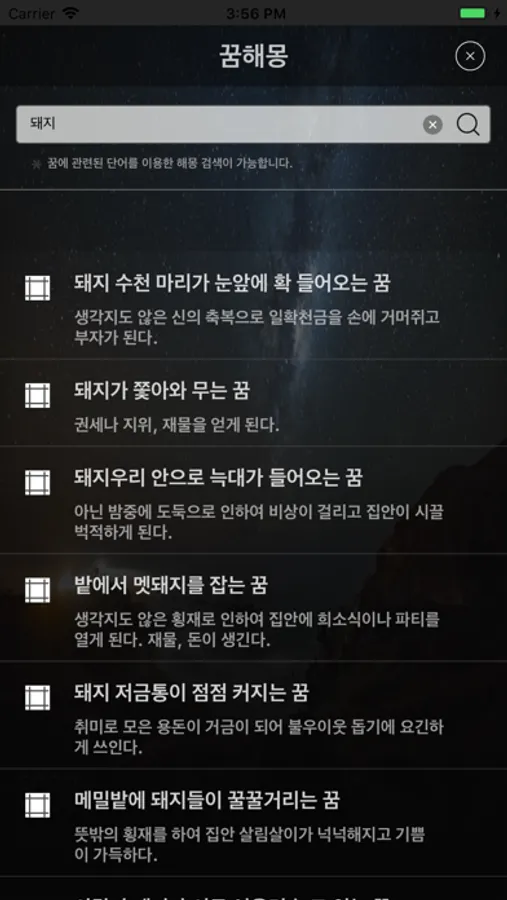 4. 꿈해몽 : 간밤에 꾼 꿈이 기이하거나 궁금할 때, 꿈에 해당 하는 키워드를 단어로 입력하여 검색하여 관련 꿈들의 꿈풀이 정보를 제공해드립니다.