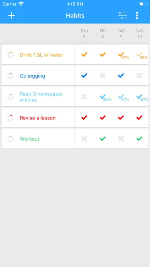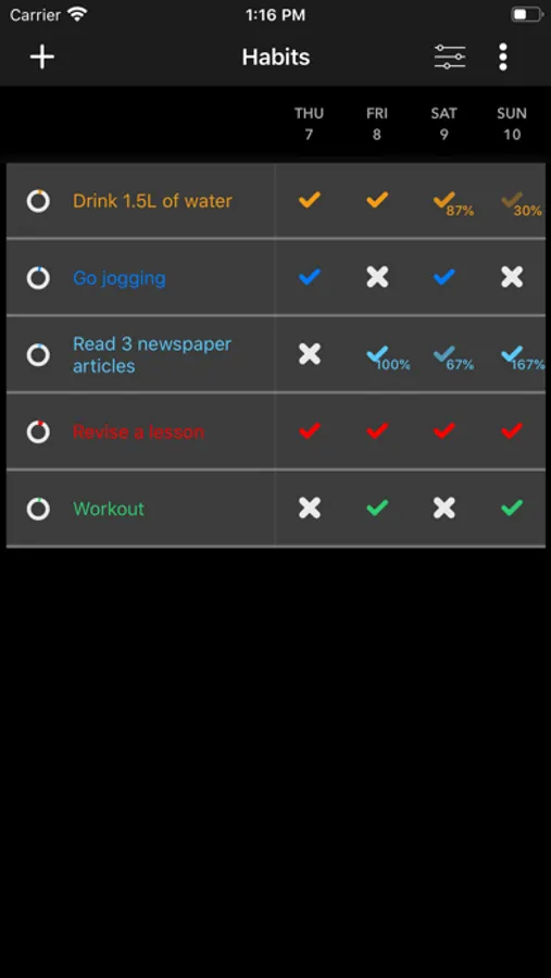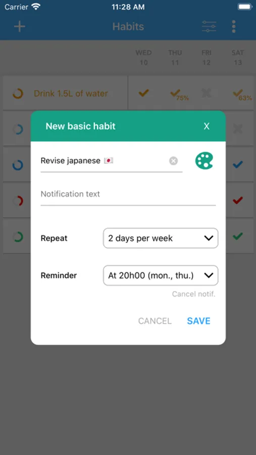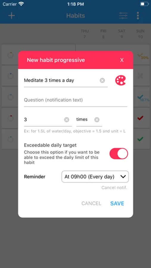 Habits helps you keeping track and achieving your goals, by allowing you to customize them the most while keeping a simple and intuitive UI and user experience.
