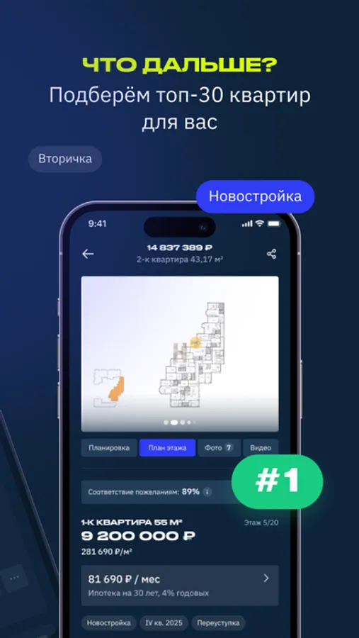 Более 60 пожеланий к квартире — уникальная система пожеланий включает направление окон, расположение гардеробной, близость к торговым центрам и супермаркетам и другие параметры. Укажите, что для вас важно, а цифровой риелтор проанализирует ваши пожелания и выведет самые подходящие объявления на первые места.