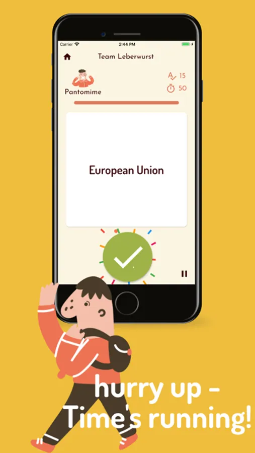 "Time's running - charade game" is a great party game for a convivial evening with your friends. Only one person has to download the app, after that all of you can easily play it on one device. You can choose from a wide variety of card sets from different categories, funny rounds are guaranteed here. With this charade game, pleasure is definitely pre-programmed!