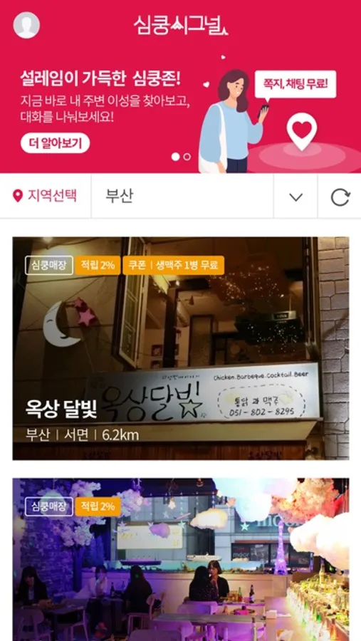 심쿵시그널에 가맹점으로 등록된 매장을 말하며 주로 맛집, 카페, 호프집, 노래방, 보드게임방, 커피숍, 클럽, 행사장등 업종은 매우 다양합니다.