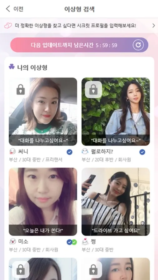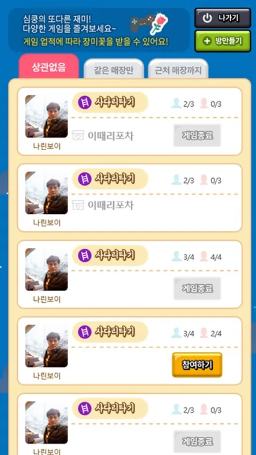 이런 지역을 심쿵존이라고 하며, 심쿵존 안에서는 이성의 프로필 보기, 쪽지 보내기, 채팅, 게임등 모두 무료로 이용 할 수 있습니다.