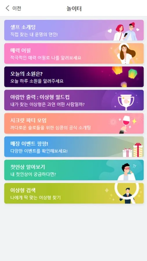 이성과 가까워질수 있는 솔로탈출을 위한 특별한 모임 입니다.