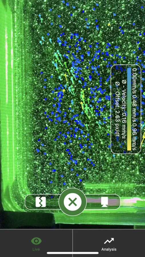 SmartPIV enables you to determine flow velocity within a PIV setup (particle imaging velocimetry). The expected experimental setup of the PIV System consists of a flow channel and a laser illuminated current enriched with particles. In this setup, SmartPIV replaces the traditional camera and analysis software.