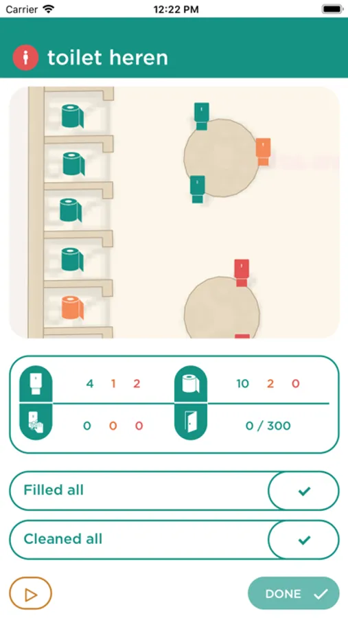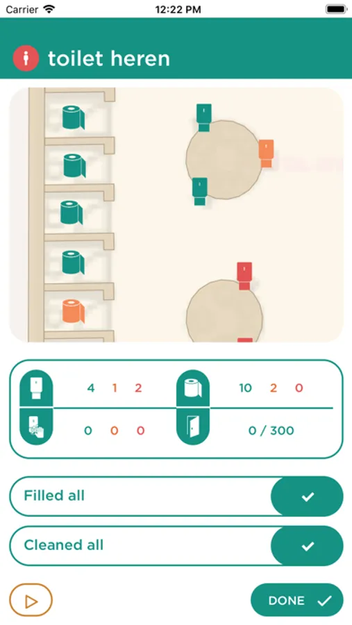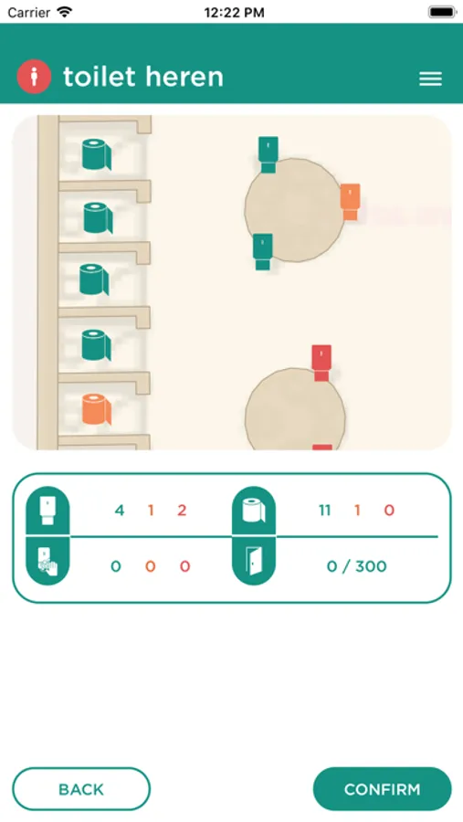App that improves insight about your washroomstatus, easy to see which washrooms needs filling and which ones need cleaning.