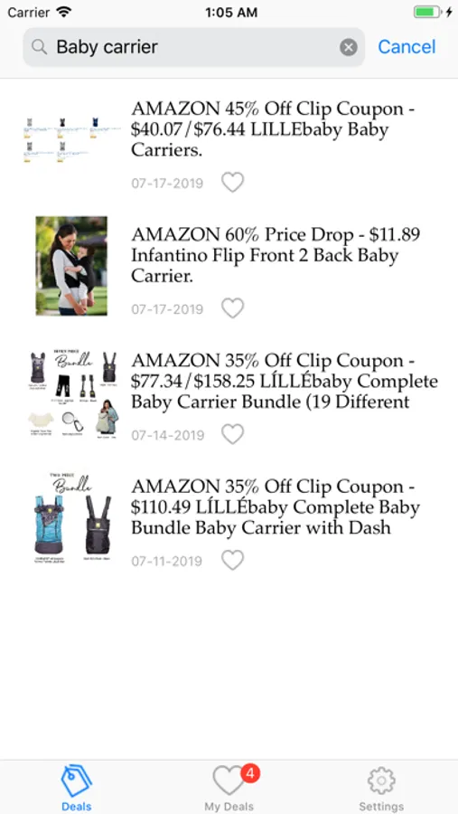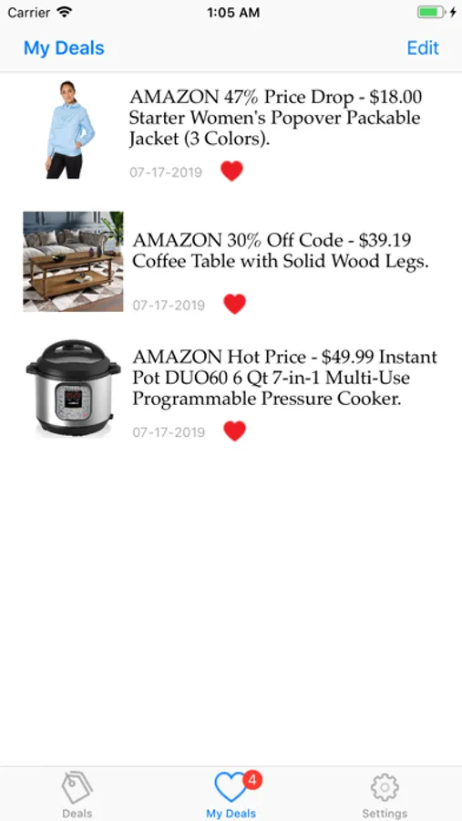 You can browse, search daily deals in the tab Deals and Categories, save your favorite deals by hearting them and review them in the tab My Deals.