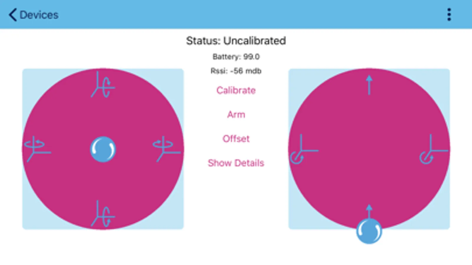 The GUI allows to pilot the ST Drone after the BLE connection has been established, then the drone is driven by touchable analog cursors.
