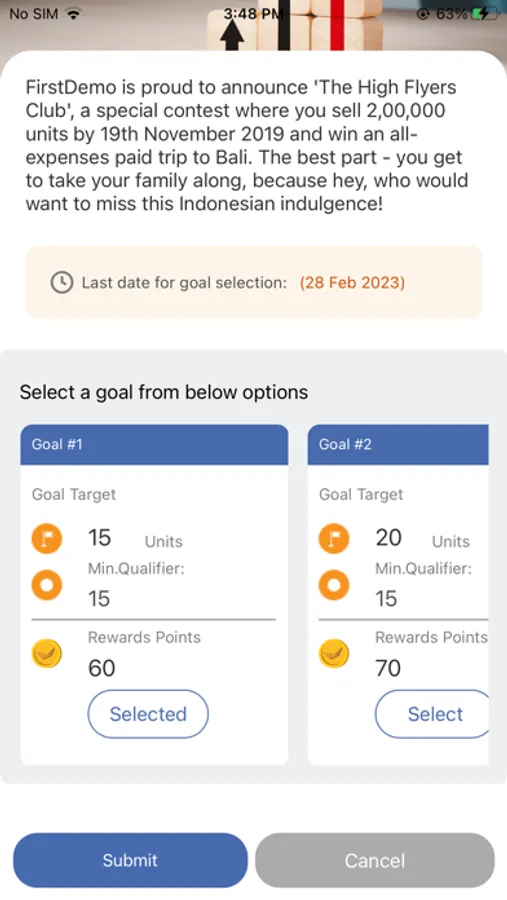 · rules ENGINE: Adopt pre-developed business logic for the most common channel programs such as “Do this, Get that”; achievement of single or multiple targets, or GoalQuest®.