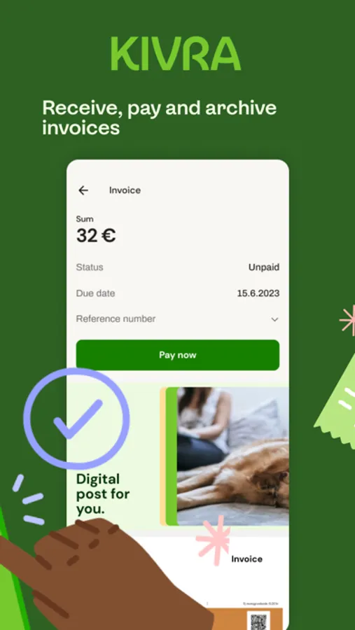 The app notifies you every time you receive new mail and when the due dates are closing. You can pay invoices directly from Kivra app.
