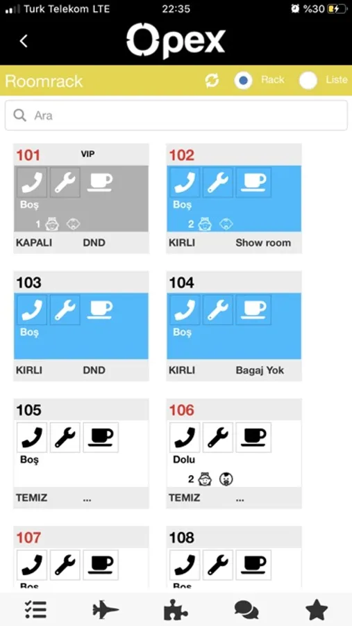 + RoomRack ile HK departmanınız odaların müsait olma durumlarını değiştirebilir/ görüntüleyebilir.