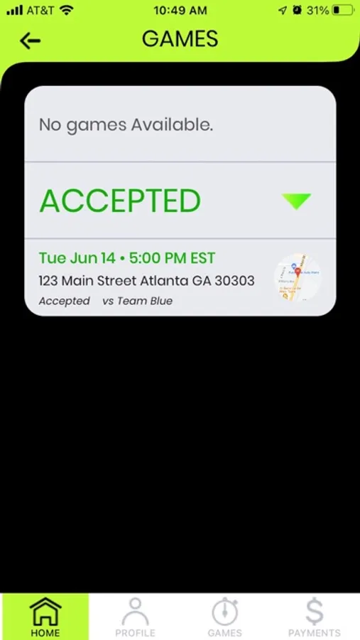 See all your games in one place, including field address and Coach