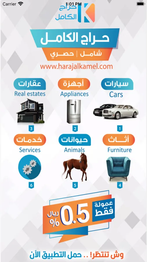تسوق في السلع للسيارات والمركبات، وسوق العقارات والأملاك، والتجارة والكتب، والنقليات، والكمبيوترات، والهواتف والأرقام، والأجهزة والأدوات، والوظائف والخدمات والكماليات وملابس نسائية ورجالية، وحراج الكامل أخرى
