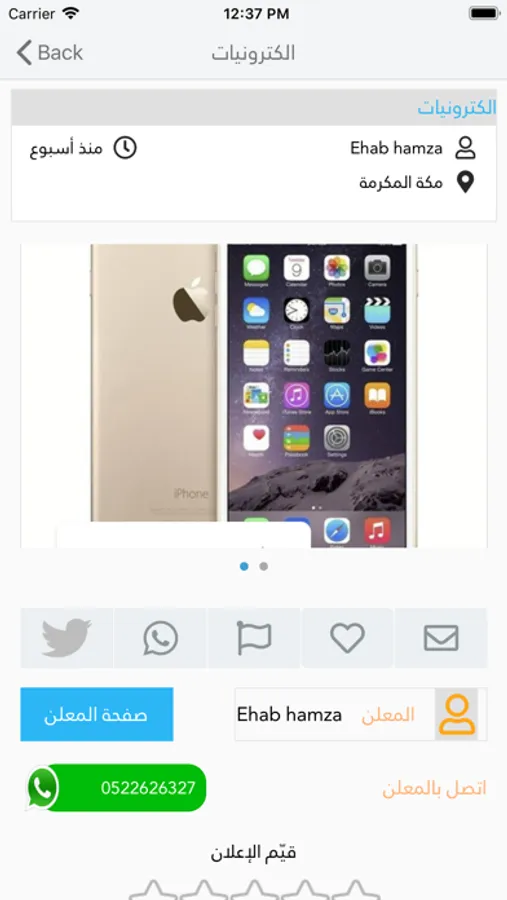 إمكانية التواصل مع البائع أو المشتري بضغطه زر على الواتس أب