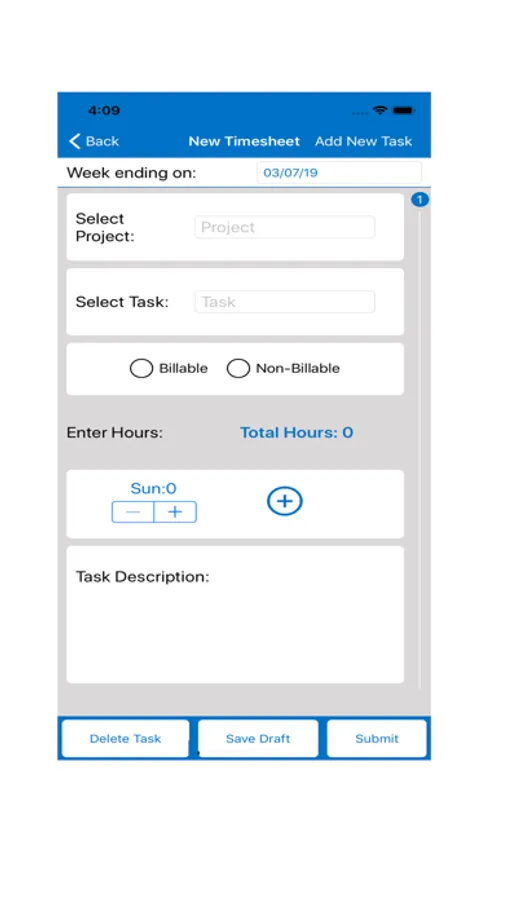 - User can view their drafted, pending approval, approved and rejected timesheets.