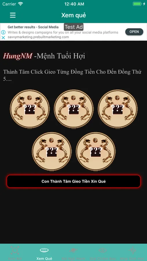 • Xem Quẻ: Gieo Quẻ Online, gieo 5 đồng xu để xác định vận mênh sắp tới của bạn - được giả lập ngẫu nhiên chính xác như xem bói ngoài đời thật.