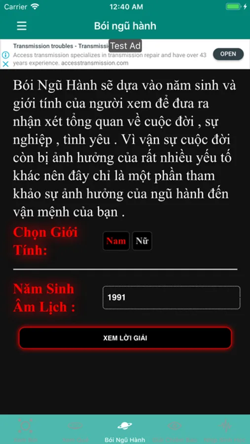 • Bói Ngũ Hành: Xem bói theo Ngũ Hành dựa vào năm sinh của bạn sẽ cho biết những tính chất chung nhất về bản mệnh của bạn theo Ngũ Hành mà bạn đang mang.