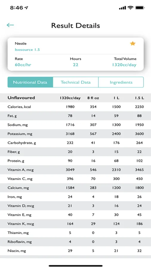 This app will calculate all macronutrients and micronutrients for all formulas distributed by Abbott, Nestle, and Kate Farms.