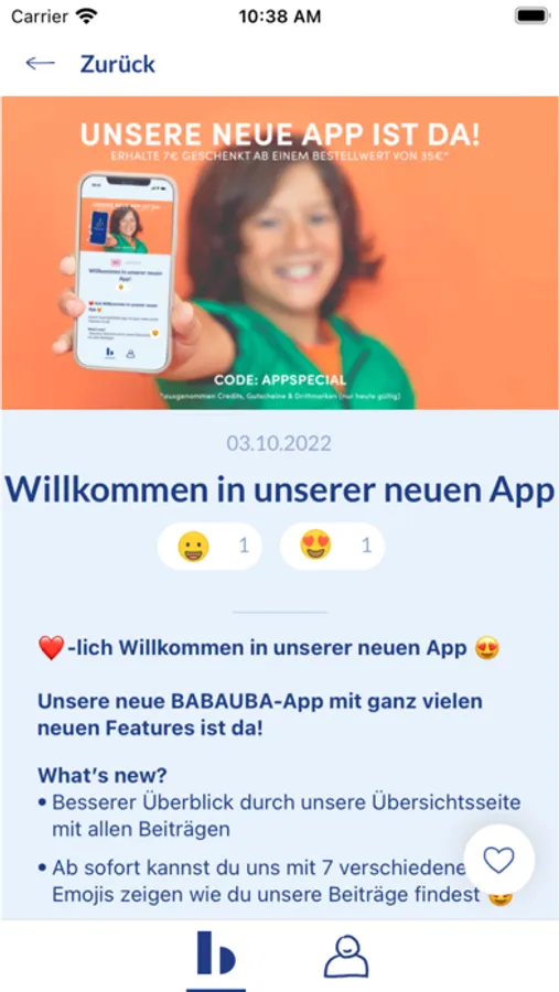 Mit der BABAUBA-App bist Du immer am aktuellen Stand über alle Neuigkeiten zu unserer bunten und hochwertigen Baby- und Kindermode. Dank der Push-Benachrichtigungen erfährst Du als erster von neuen Kollektionen, Aktionen und vielem mehr rund um unsere bunte Kinderwelt. Täglich reinschauen lohnt sich, denn es warten zahlreiche exklusive App-Gewinnspiele auf Dich!