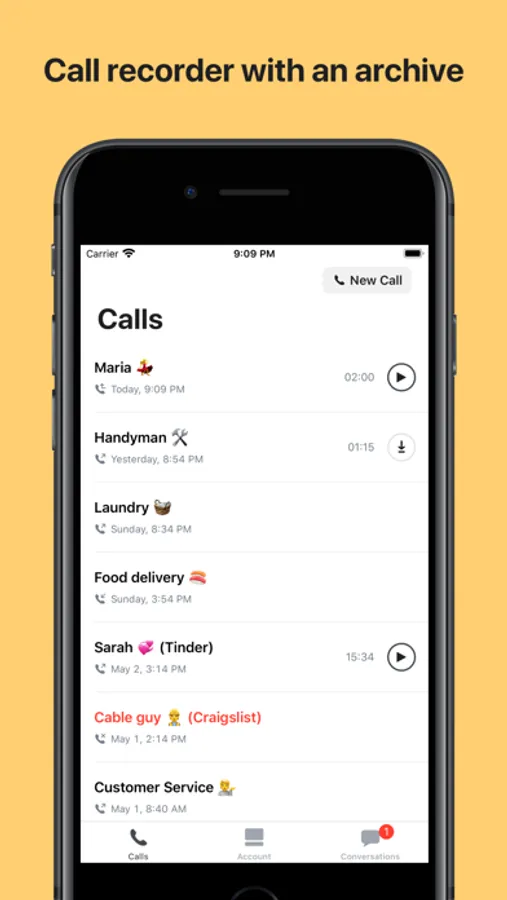 * “Phone Number & Call Recorder (1 Month)” for $14.99/month, “Phone Number & Call Recorder (6 Months)” for $86.99/6 months, “Phone Number & Call Recorder (12 Months)” for $139.99/12 months give you what “Phone Number” subscription does, plus access to full call recordings