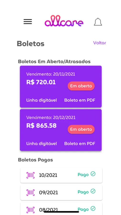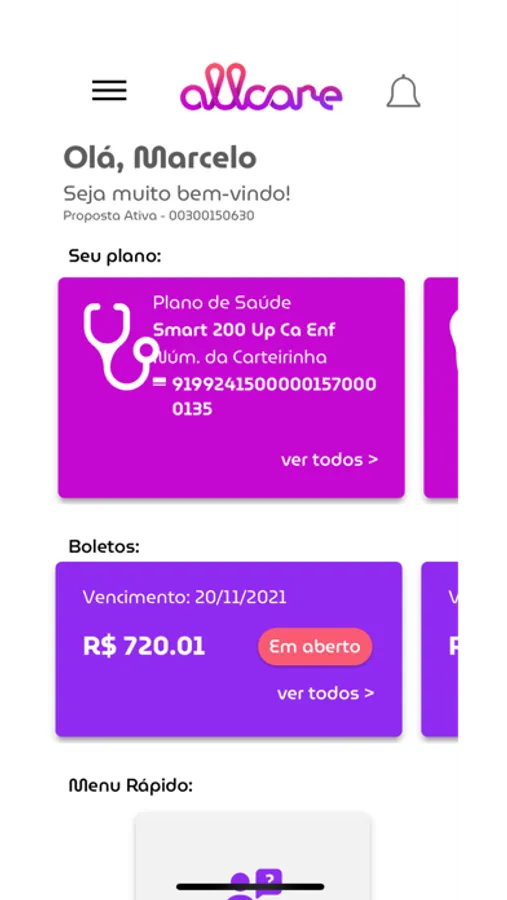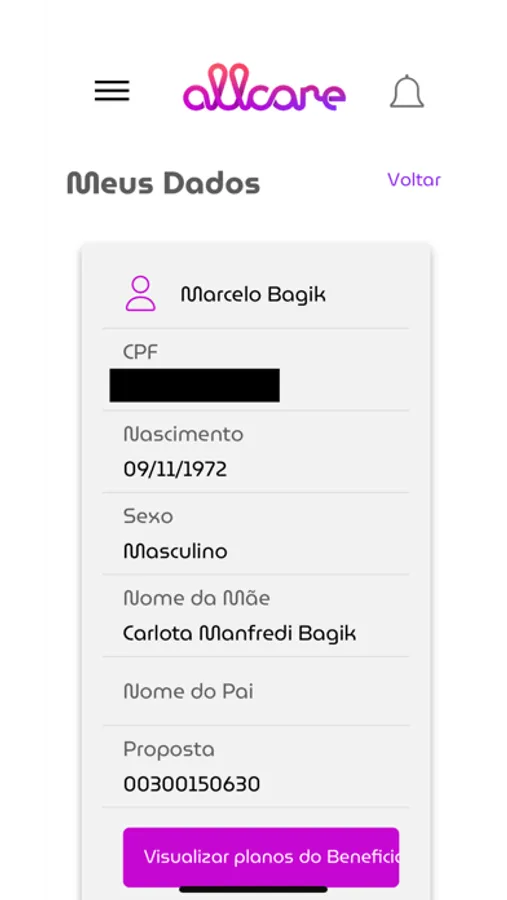 Você, beneficiário da AllCare, poderá acessar suas informações e as de seus dependentes, assim como os dados de seus planos, números de carteirinha, boletos e muito mais!