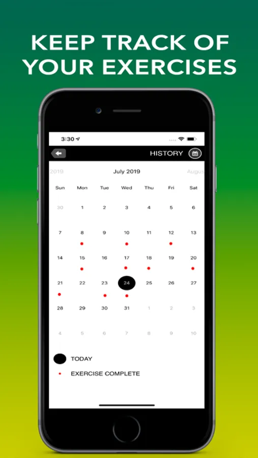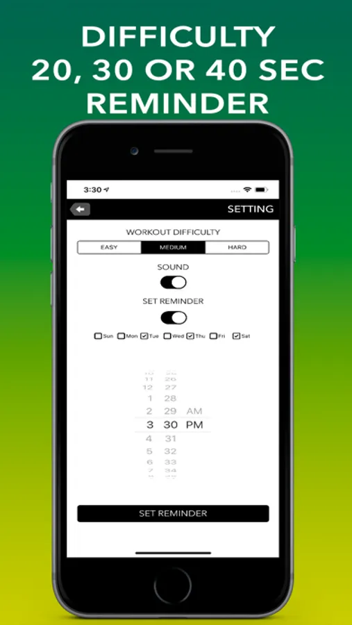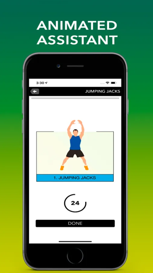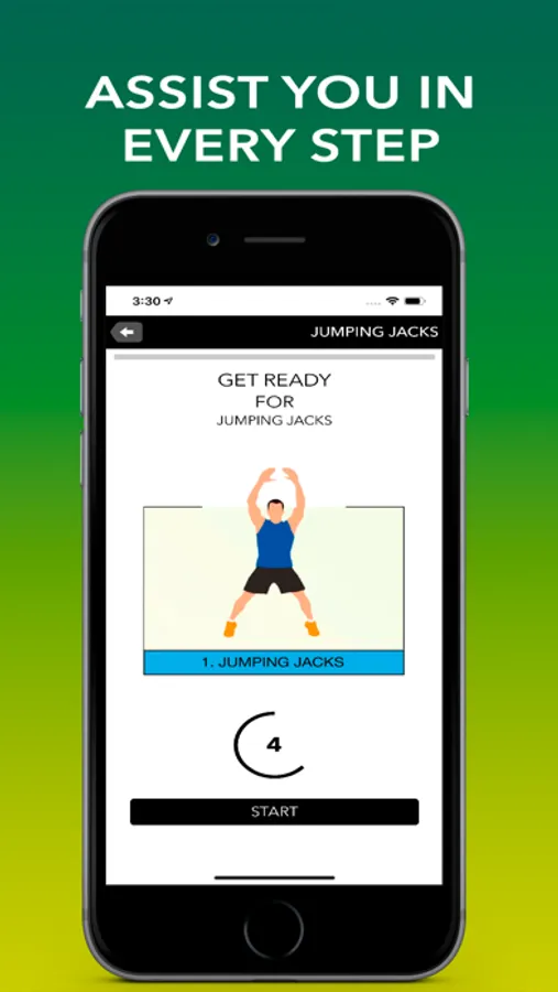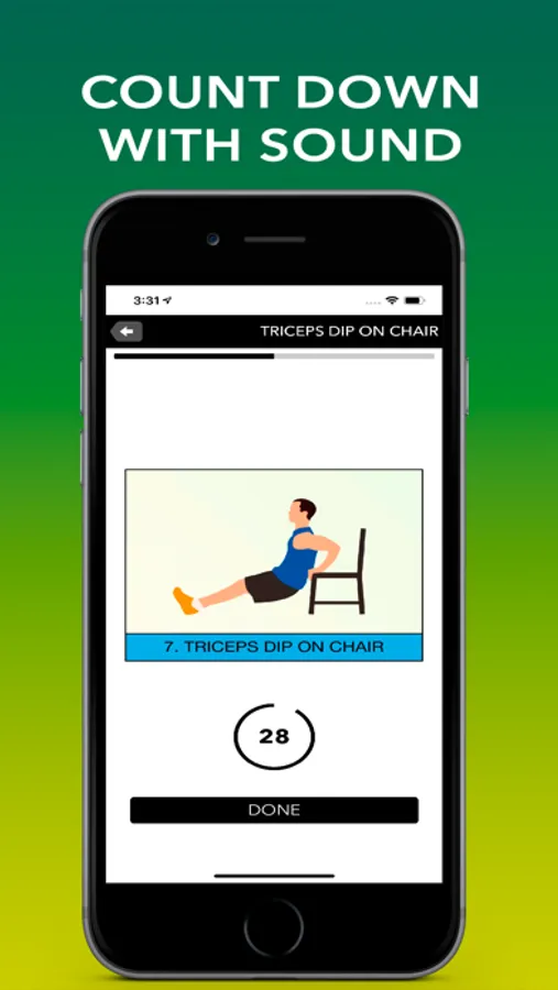 - Perform workout with countdown timers and prompting sound for each exercise and breaks.