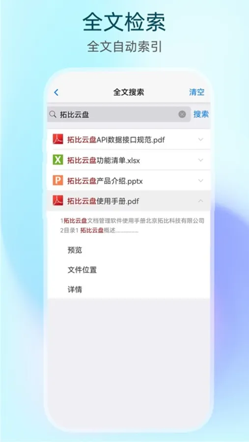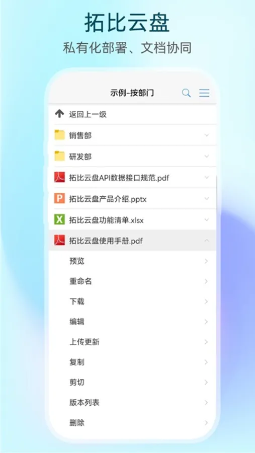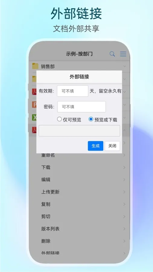 统一存储、管理企业文档,随时随地通过APP查看文档,可更新、发布外部链接。