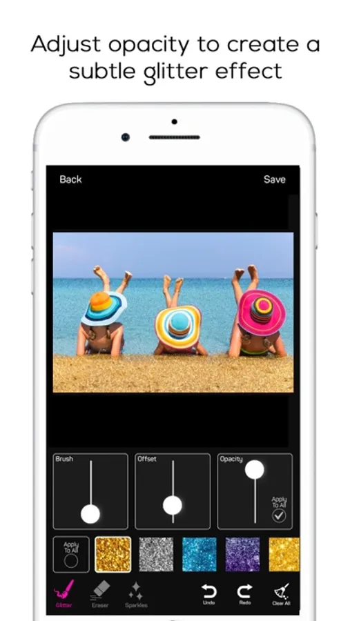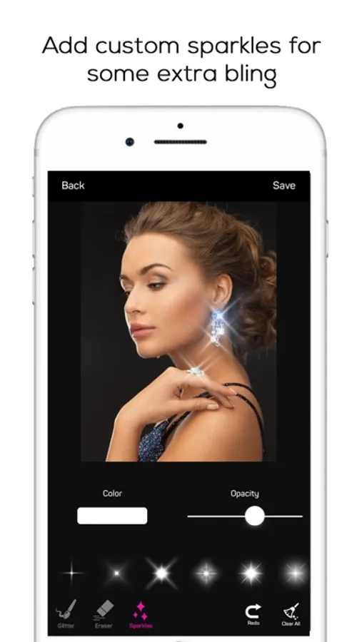 Add multiple glitter and sparkle effects to your photos. Mix and match different patterns and sparkles for just the right look. Add some extra bling to your jewelry, clothes, landscaping, sky, cars, motorcycles, or anything else you'd like! Play around and have some fun!
