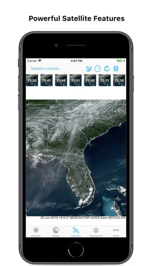 - Full Color Satellite features 30 Locations for you to Zoom in on, with 17 Radar Modes per Location