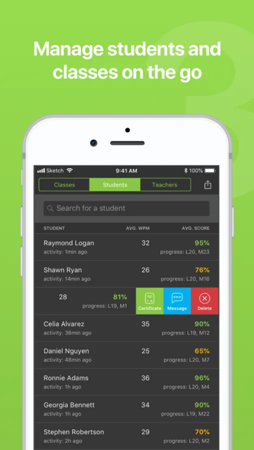 Save time with quick actions - view student progress, send messages, manage classes and email certificates