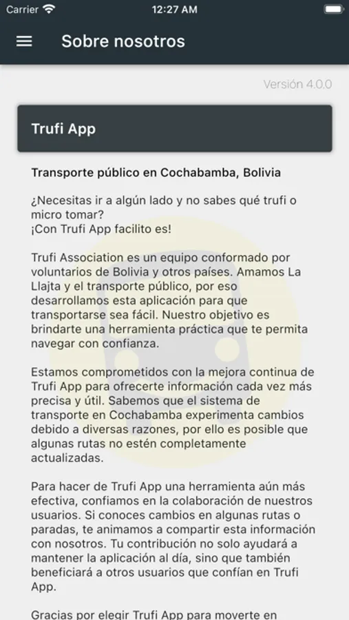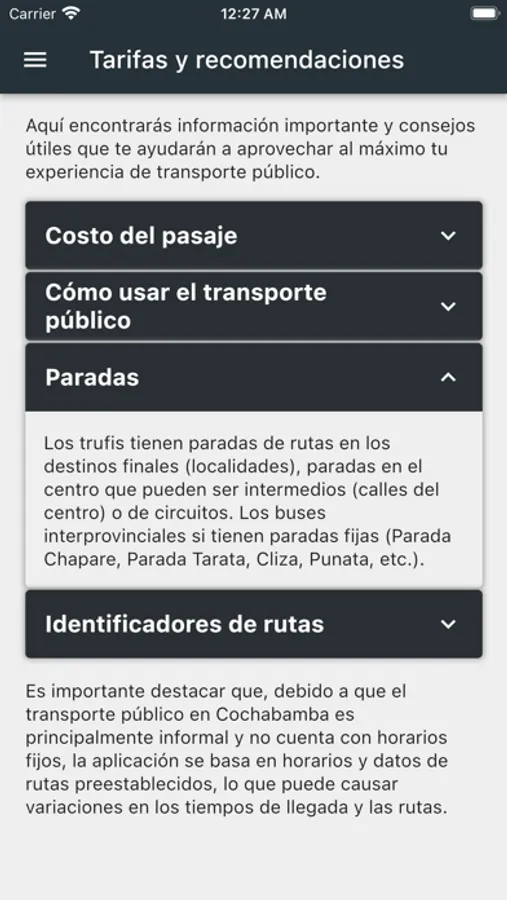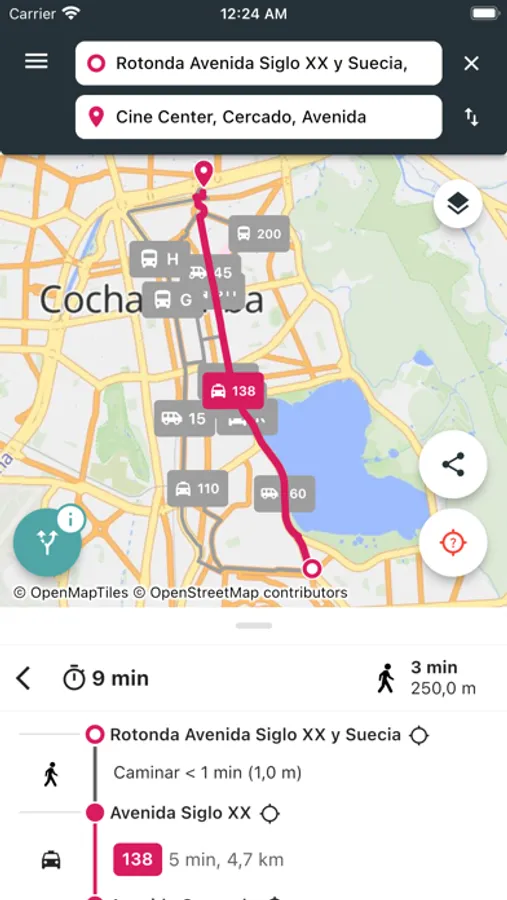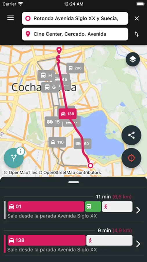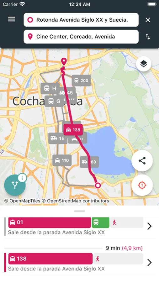 - Multiple types of public transport (Bus, Micro, Trufi Taxi)
