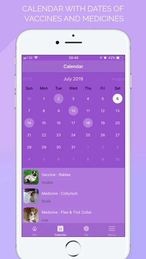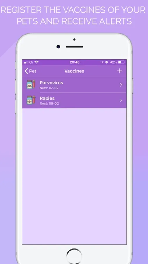 - Register the vaccines of your PETS and receive notifications to remind you of the correct vaccination day.