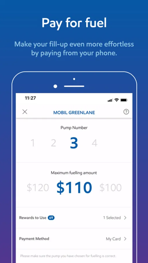 *Pay in car* Pay for your fuel from the comfort of your car and earn Mobil Smiles points.