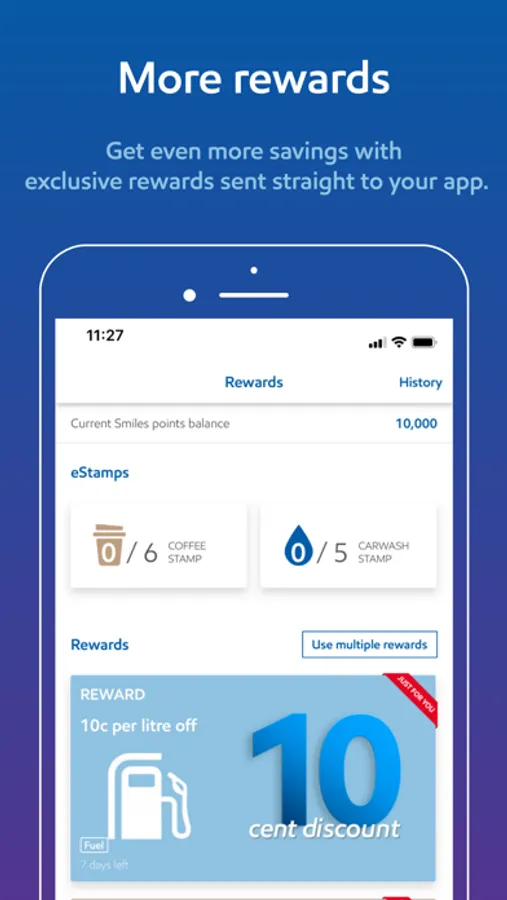 *Loyalty stamps* Get more from every purchase, with loyalty stamps for coffee and the carwash automatically added to the app when you scan your virtual Mobil Smiles card.