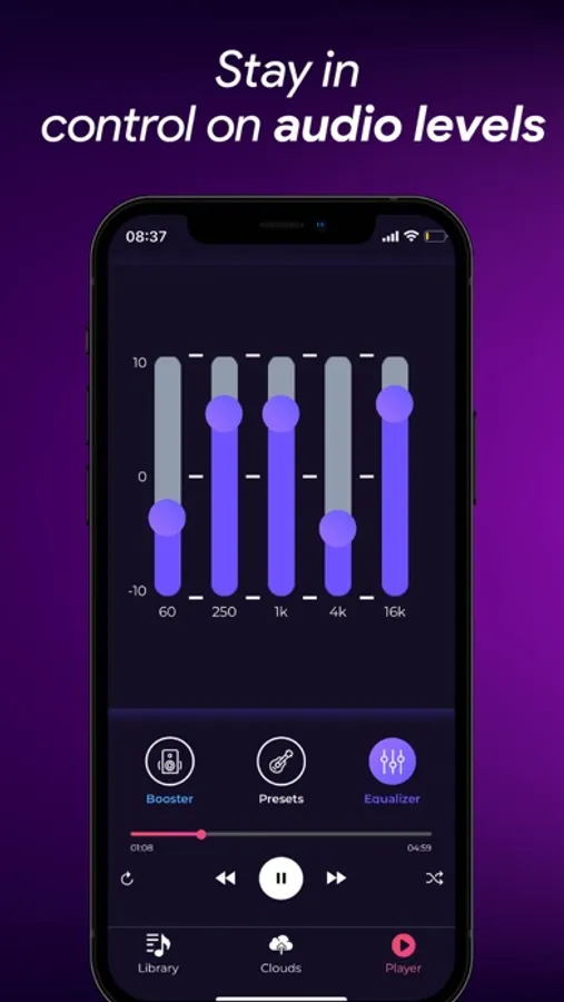 • Add stronger effects to your songs with an easy-to-use interface to boost the bass of each song in your device.