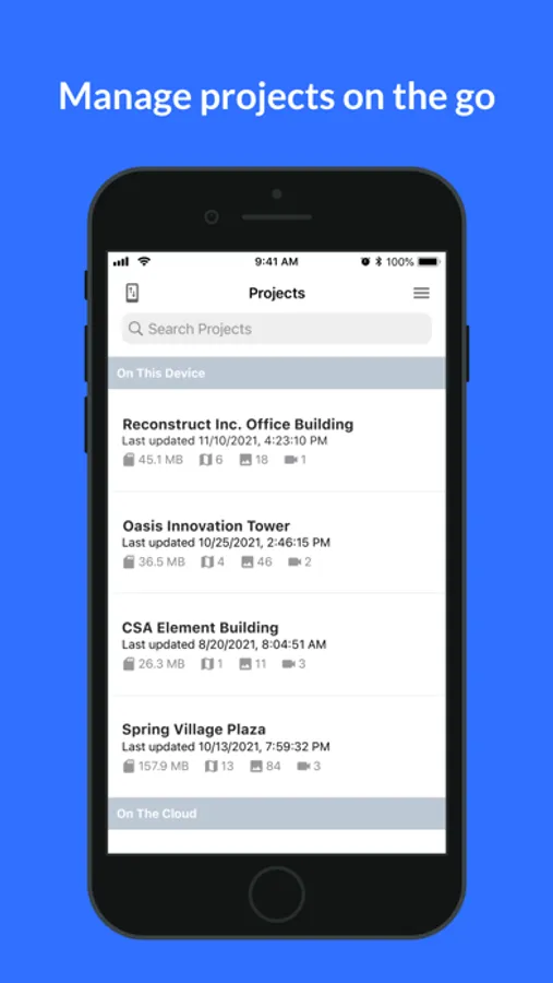 Use Reconstruct Capture app to capture videos, images for your project. Offline mode is supported.