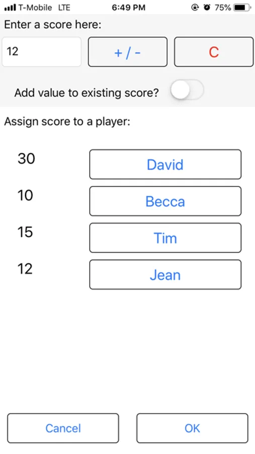 This app allows you to keep track of each player's score while you play games with your friends. It is perfect for all kinds of card games and board games, but can even work for many sports such as golf!
