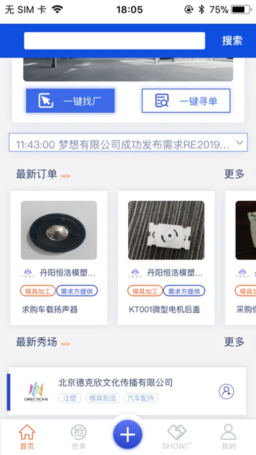 平台具有需求发布、搜索、浏览、收藏,互相关注,即时通信等实用功能。随时随地查询需求,轻轻松松下单交易,进展详情掌上可见。