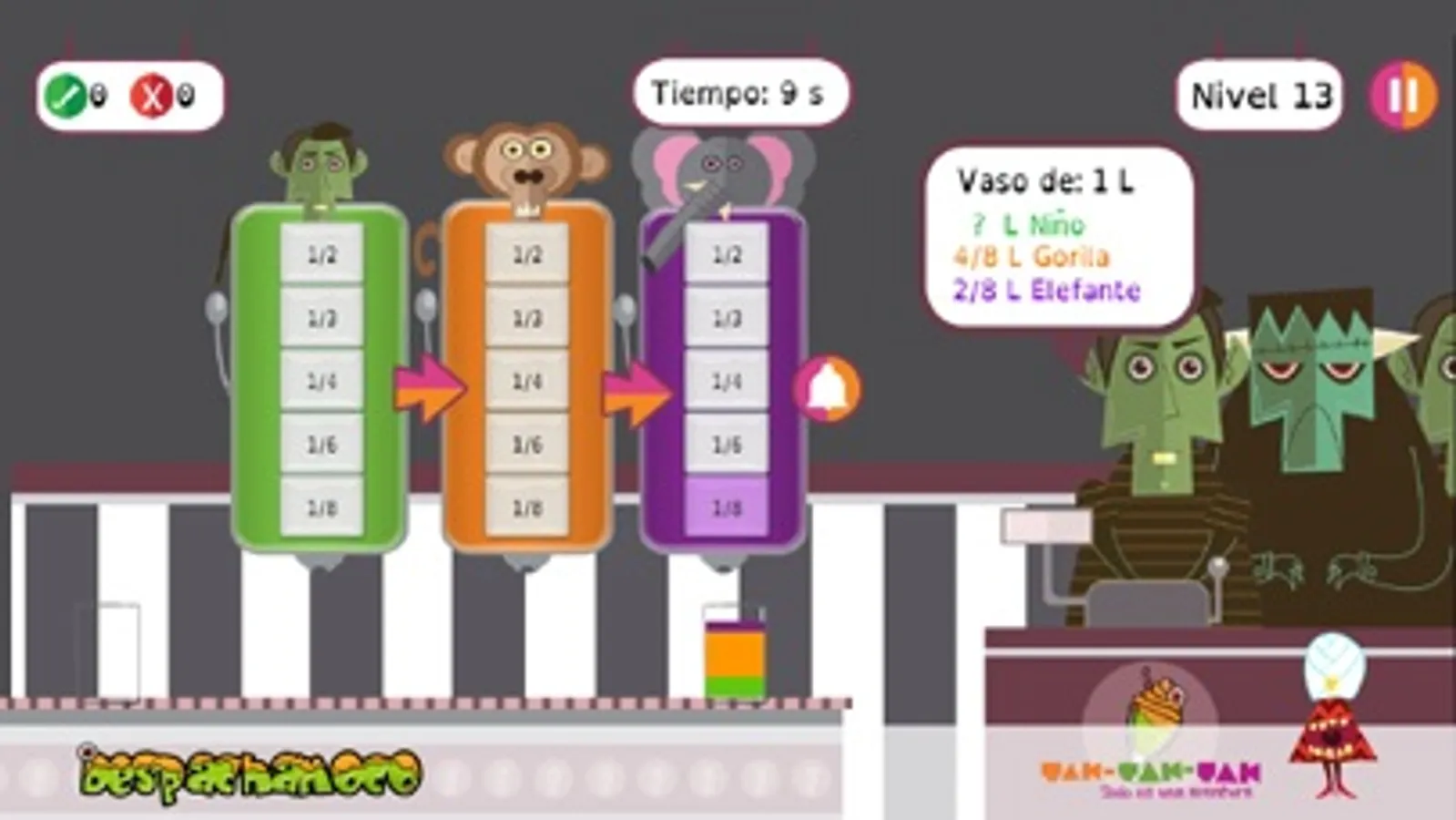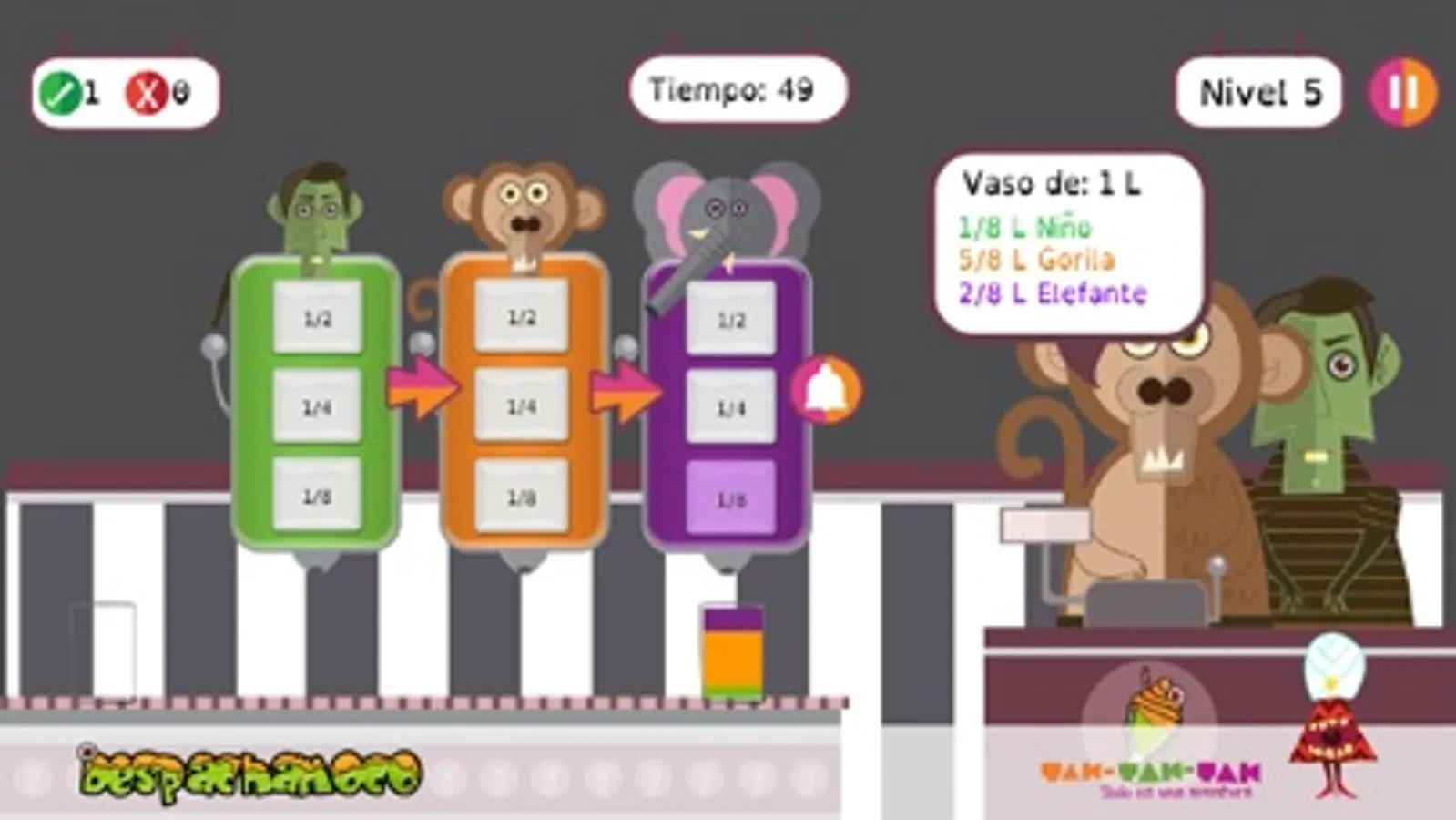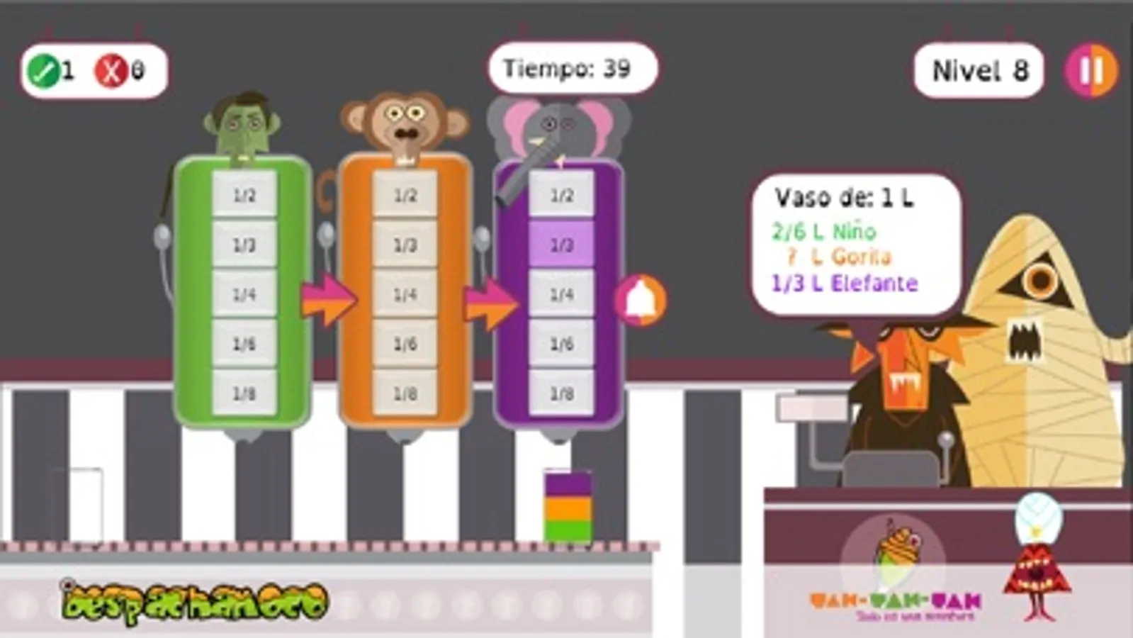 + This educational video game will invite the player to exercise, in a visual manner, the use of a fraction as part of a unit or a whole liquid, volume.