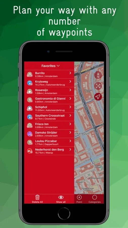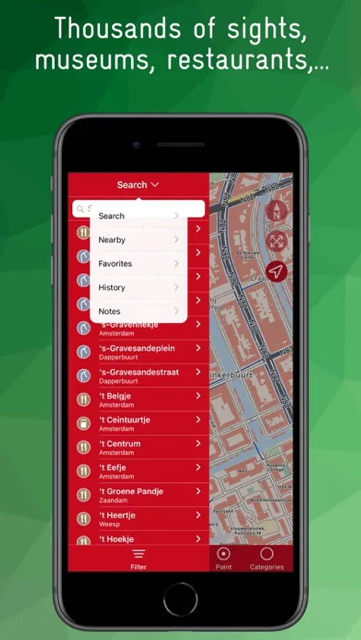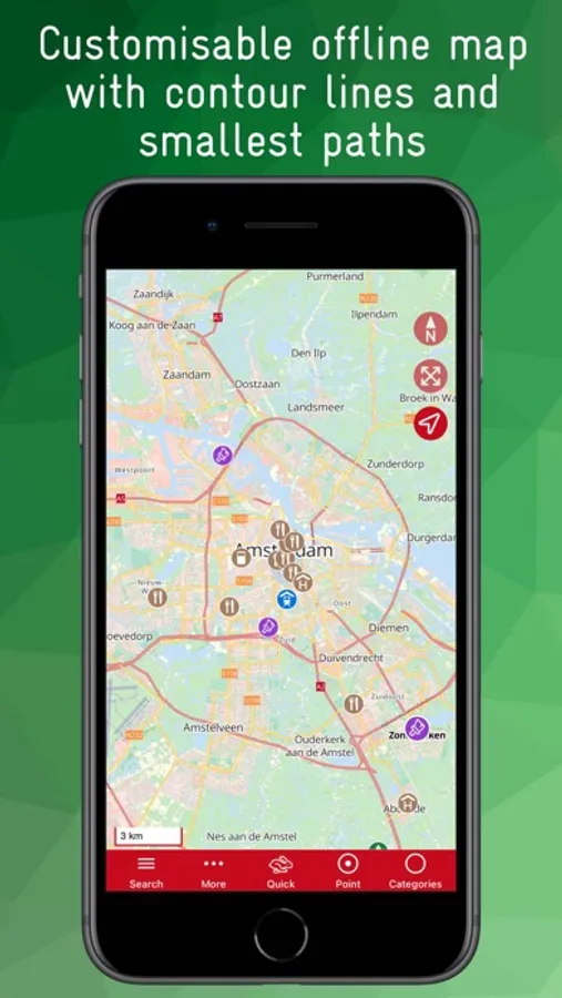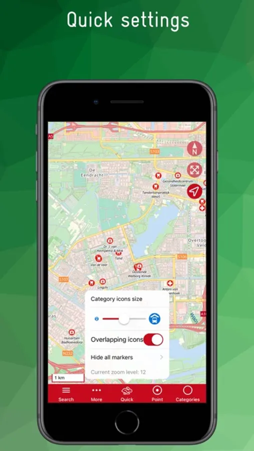 POIs are grouped into categories and can be displayed as layers. For example, you can display all restaurants, public transport lines, banks, hiking trails, charging stations and doctors on the map. The size and overlap of the icons can be adjusted to improve clarity.