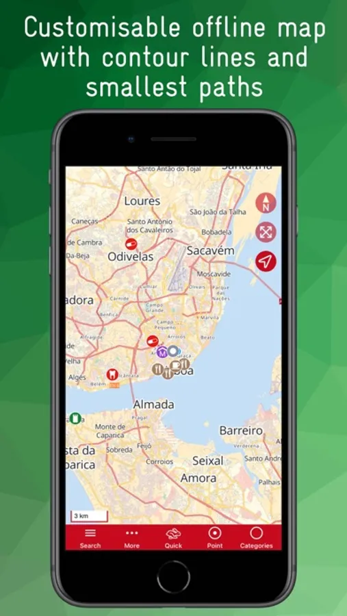 Customisable offline map from Openstreetmap with contour lines in which even the smallest paths and trails are shown.