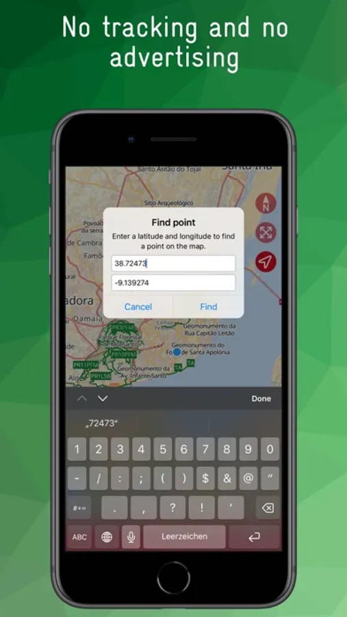 A location function shows the current position, the app is ad-free and there is no tracking.