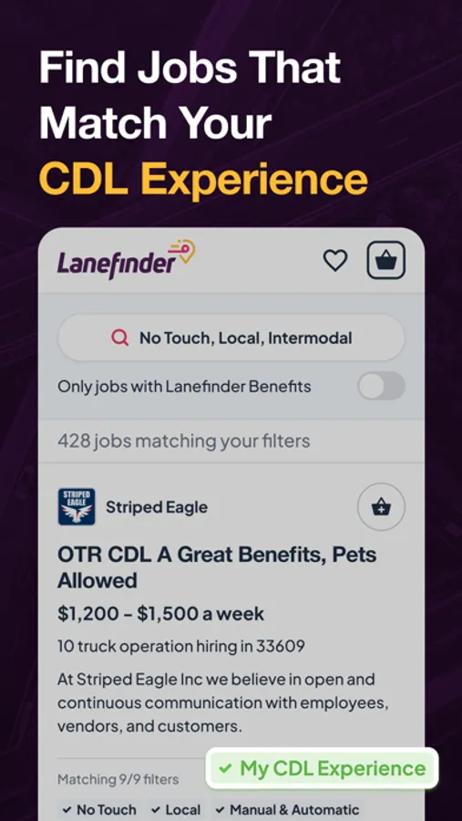 It doesn’t matter what kind of truck driver you are, or what kind of work you do. You deserve benefits. Pick any job on Lanefinder and get hired with benefits that are 100% paid-for by the employer and yours to keep - even between jobs.