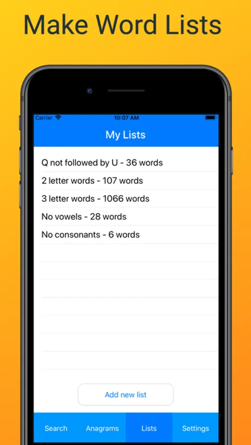 •Create custom word lists