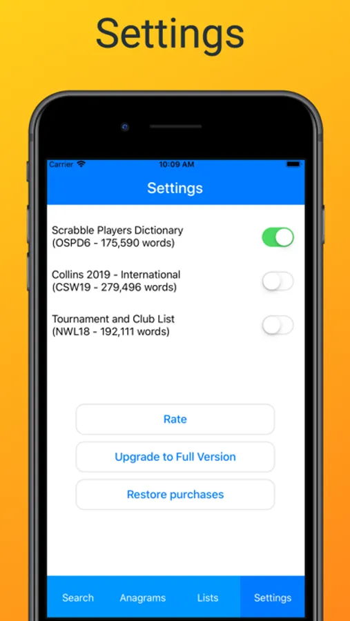 ---Choose between the NASPA Word List (NWL18) and the Collins 2019 (CSW19) word list