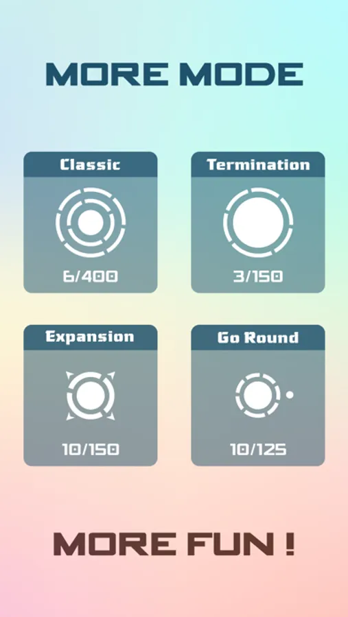 Go Round: In this mode the ball follows the rules of orbital gravity and spheres around the other rotating wheels in and endless loop. After tapping, the ball hops at the tile and bounces back to its orbit