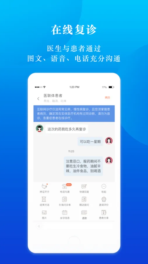 医生可在线沟通,随时调方