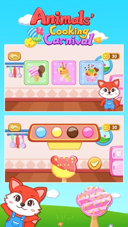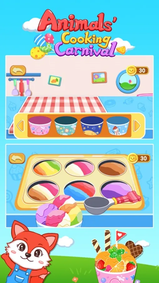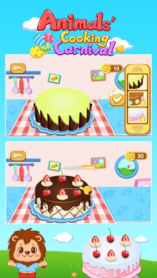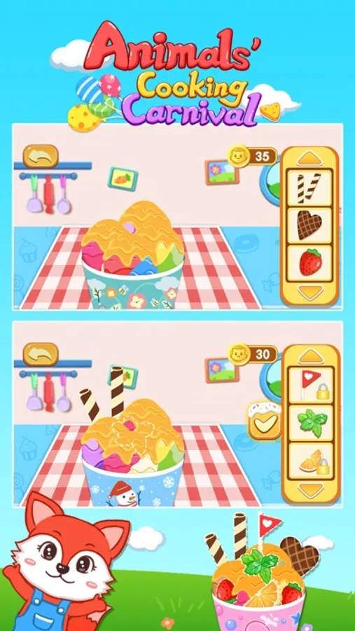 ”Lovely animals”, little fox, little monkey, lionet, Mr. Penguin and so on. They like many kinds of food, so make them food and get their appreciation and gold coins.
