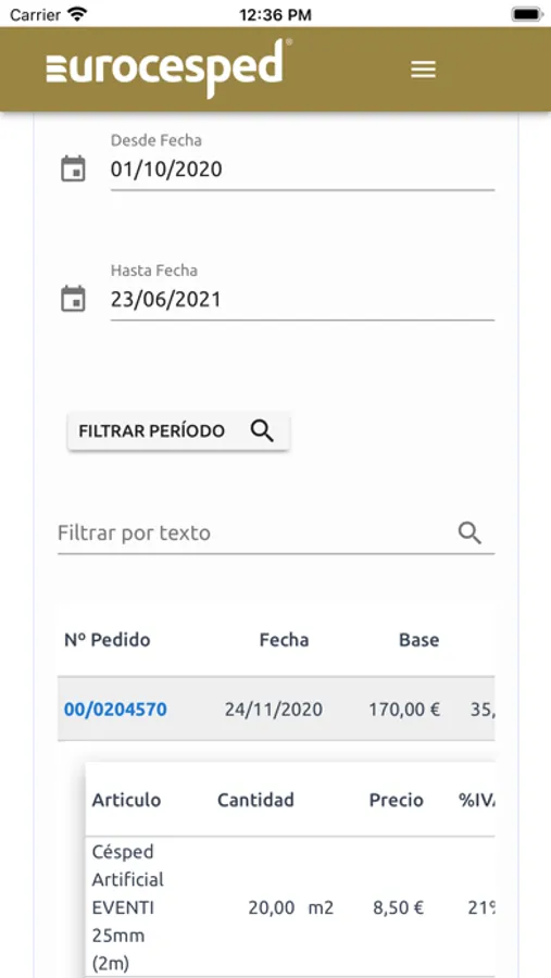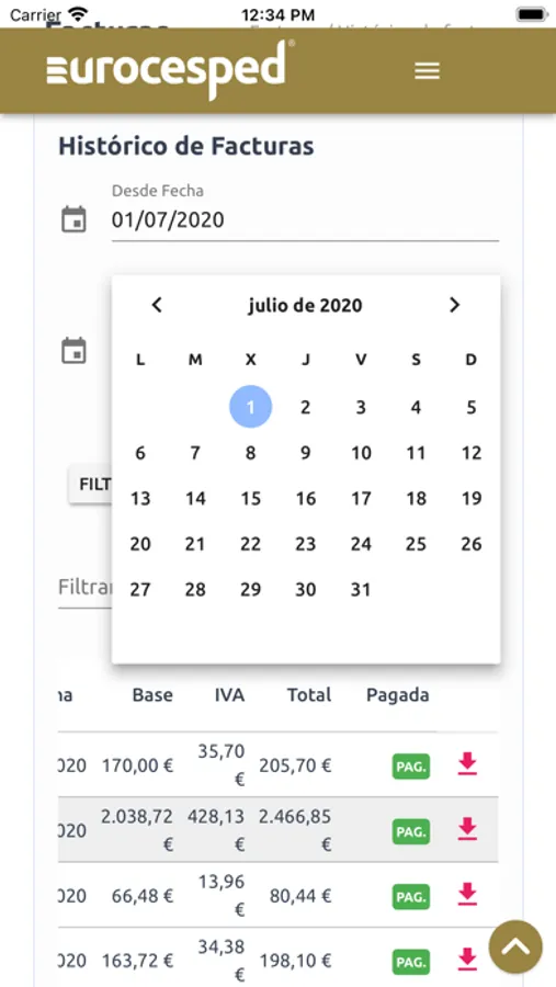 Esta aplicación te permite, si eres cliente de EUROCESPED, consultar en tiempo real la siguiente información: