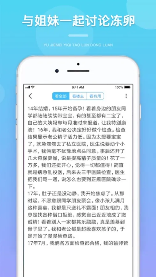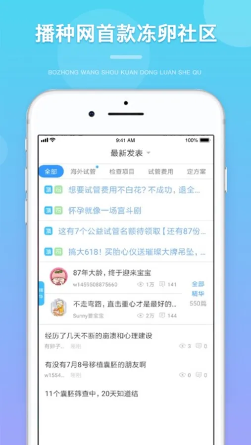 冻卵app是播种网专门针对想要冷冻储存卵子的女性做的一款社区App,全力打造最专业最活跃的冻卵交流平台,助您解决有关冷冻卵子的疑惑。